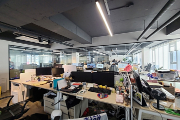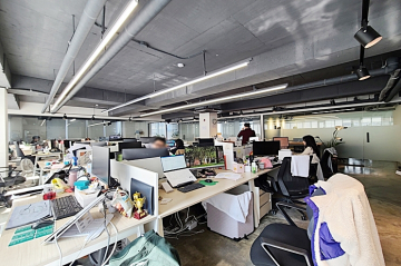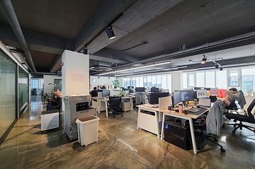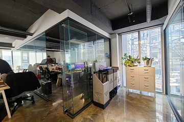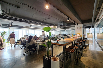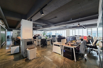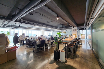 -노출천장, 에폭시바닥 유리룸으로 카페에서 일하는 느낌이겠네요!